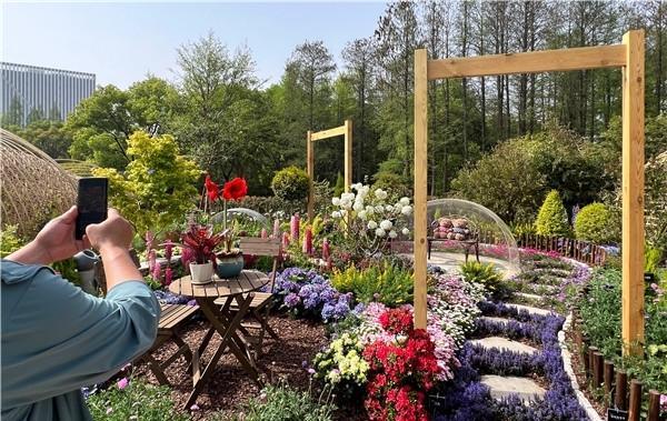 为打造沉浸观展体验,园内还设有“花漾生活集市”和“移动花卉驿站”,展销各类观赏植物、园艺衍生产品和文创产品,提供咖啡、轻餐饮等。