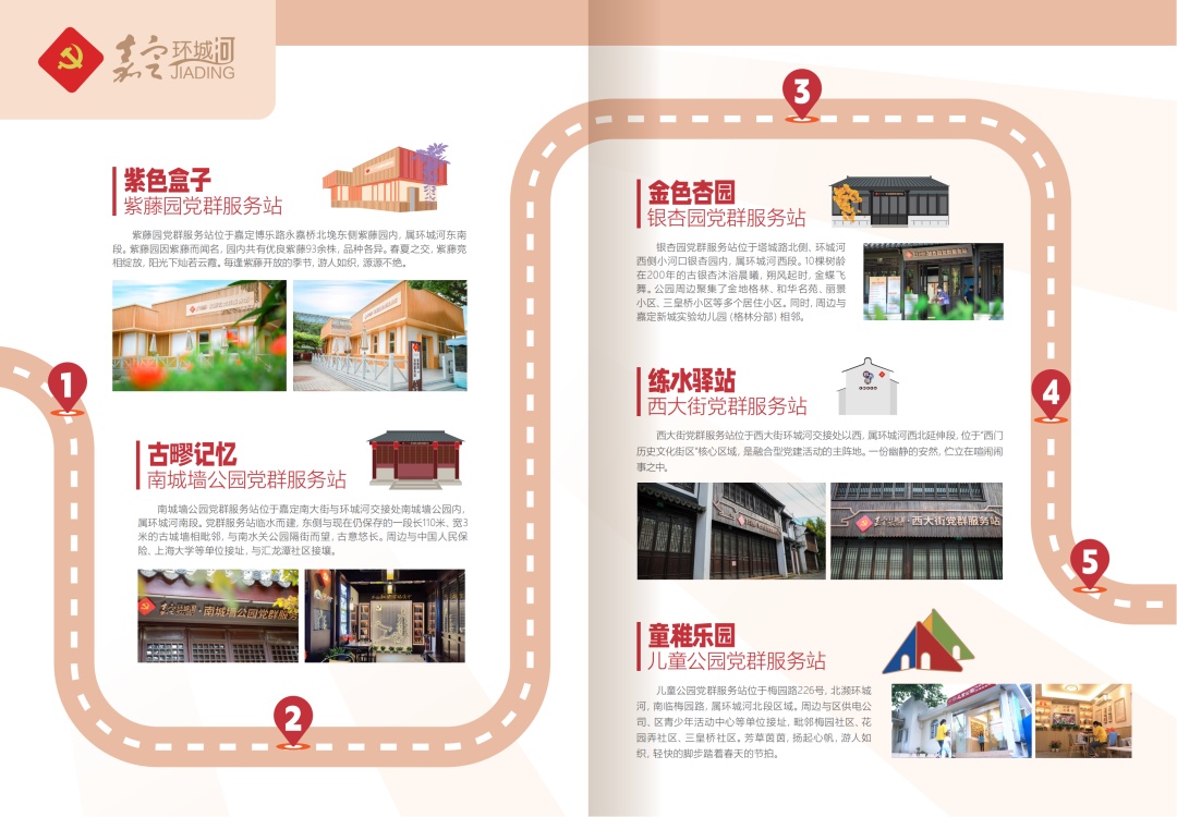 “5”则是围绕“一圈一带”打造5个嘉定环城河党群服务站,分别是南城墙公园、儿童公园、西大街、银杏园以及紫藤园党群服务站,逐步形成了极具特色的嘉定环城河党群服务体系。