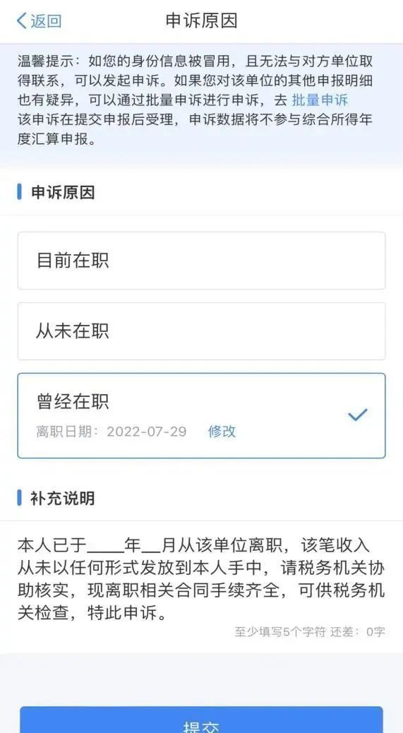 ※温馨提示:申诉时要填写正确的“离职时间”。