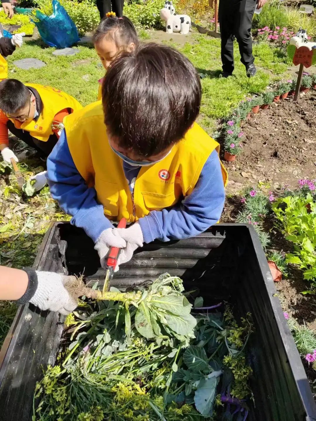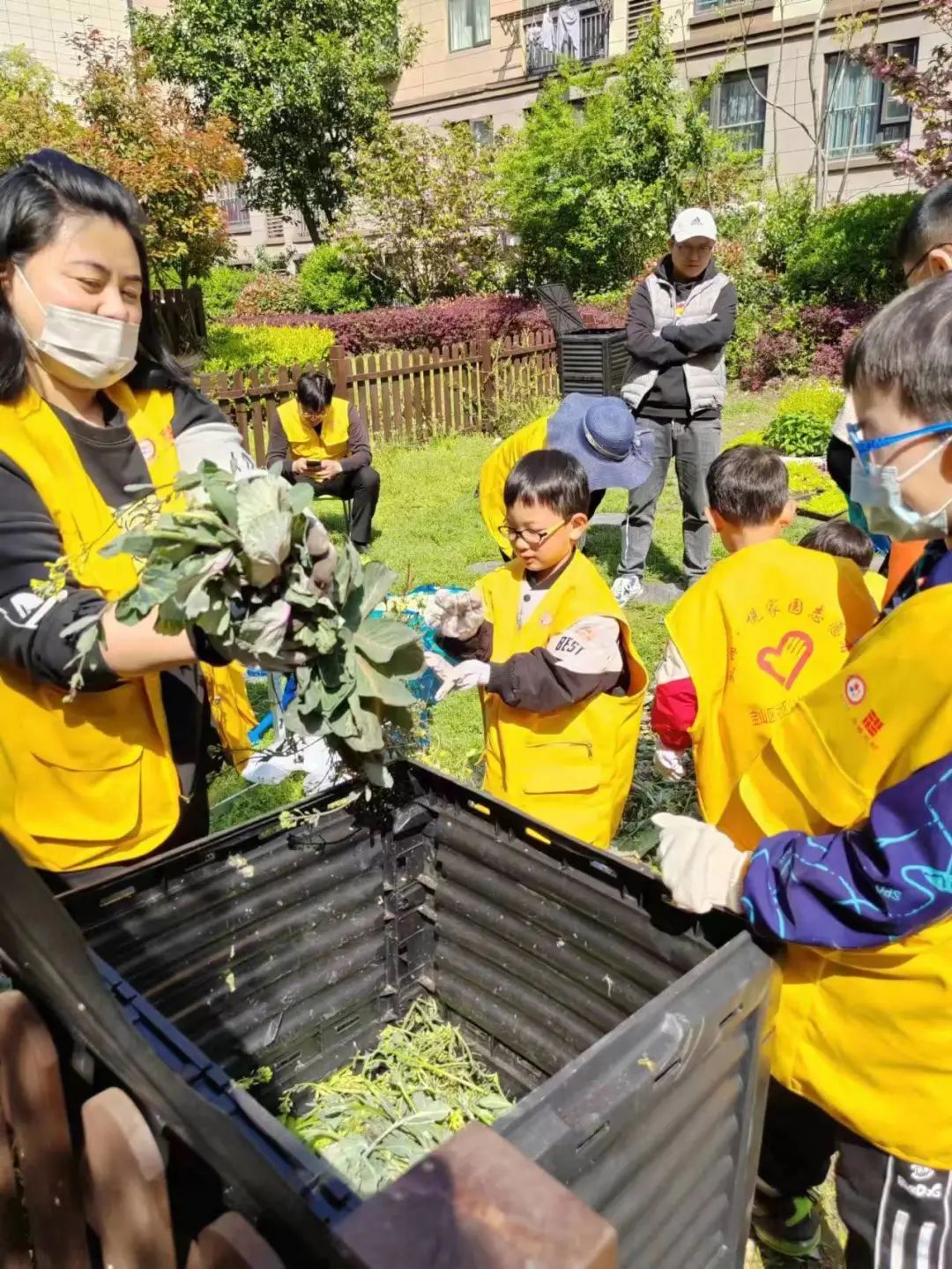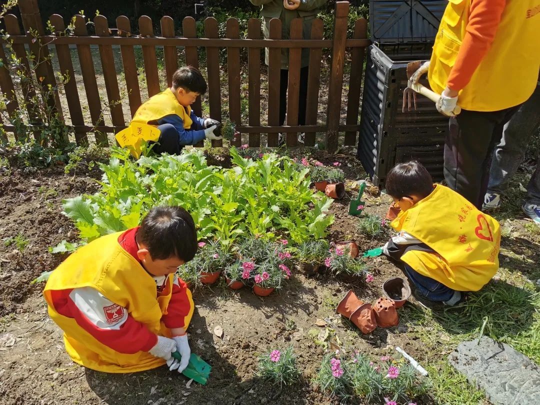 活动中,大家热情高涨,配合默契,挥锹填土,填水浇灌,悉心栽下一株株绿苗,播下一片片新绿。在老师的指导下,孩子们每个步聚都做得认真细致、一丝不苟,一株株绿苗在大家的辛勤劳作和默契配合下深深扎根在土地上,呈现出一派生机盎然的景象。此外,孩子们还学会了运用堆肥箱把产生的绿化垃圾进行堆肥再利用。
