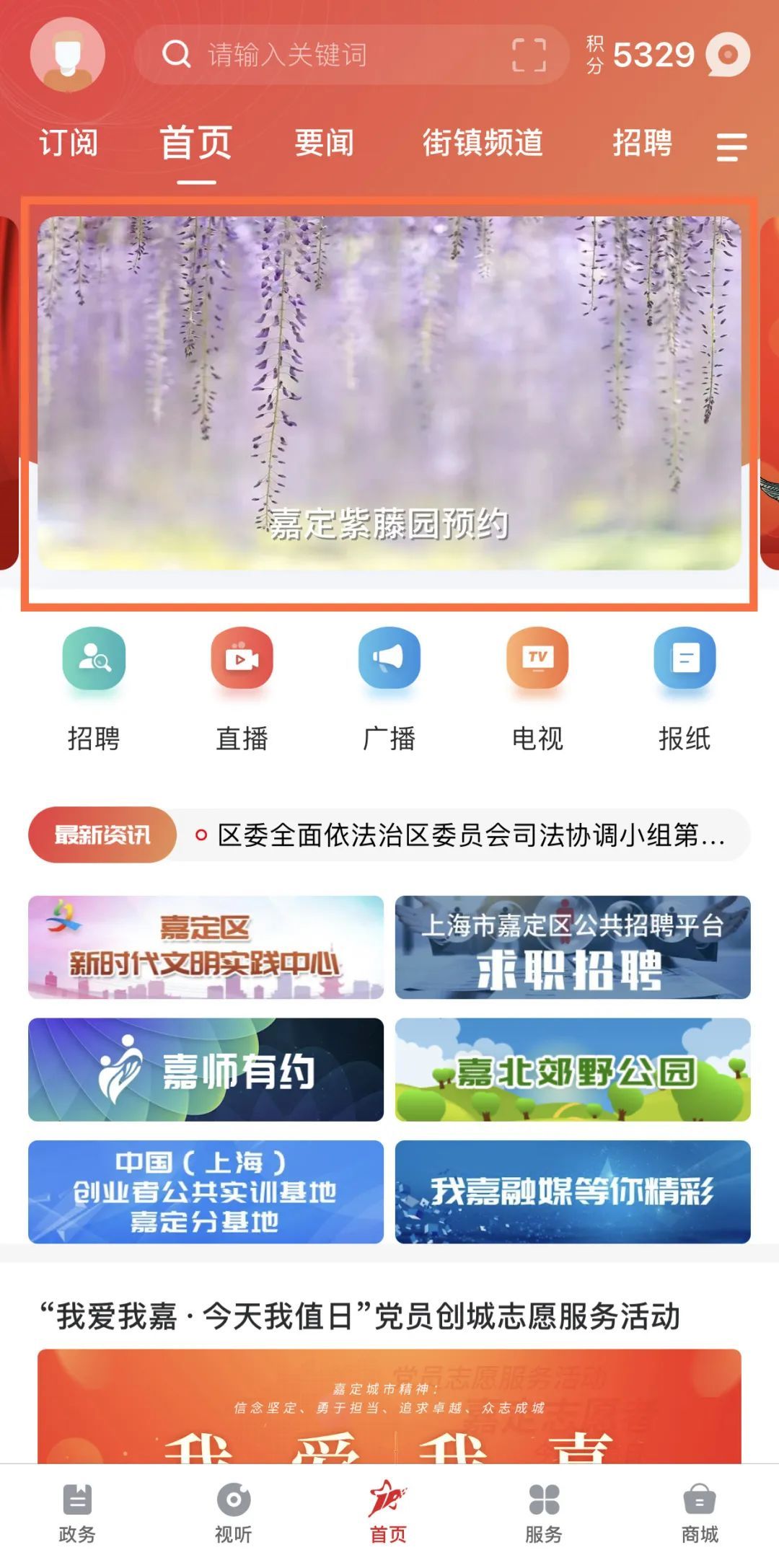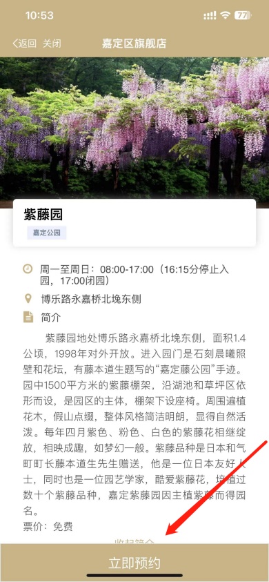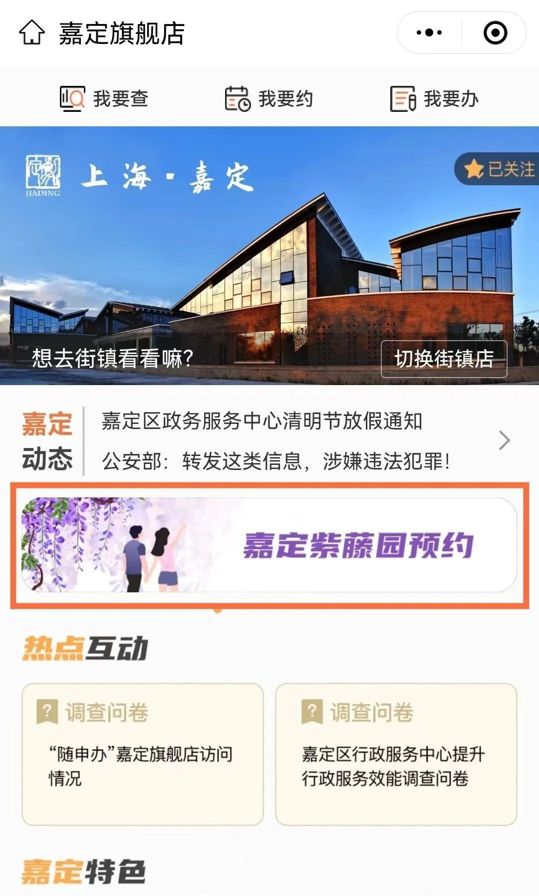 即日起至4月30日,紫藤进入盛花期,嘉定紫藤园又将迎来大客流。为方便市民预约,“上海嘉定”APP、“上海嘉定”微信公众号新增紫藤园预约入口,具体怎么约?小嘉手把手教你~