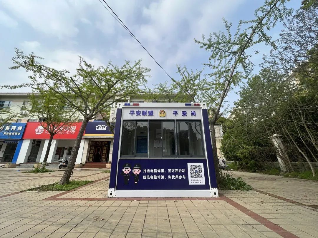 蓝白相间的外观、夜间警示灯常亮……近日,颛桥万达广场出现了一座“变身”的采样亭——平安联盟治安岗亭,上面印有提醒群众防范电信诈骗等字样。