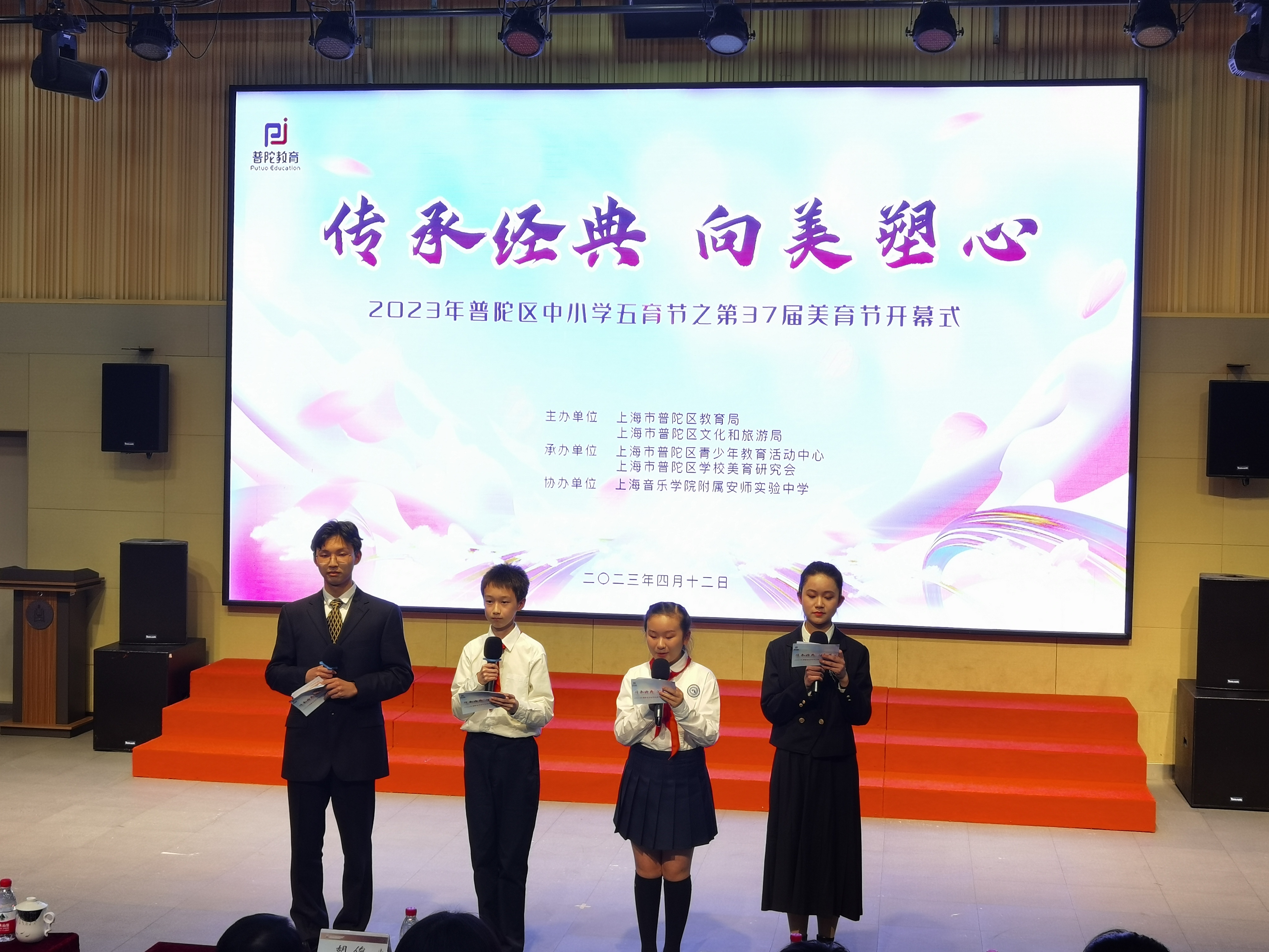 4月12日下午,在一曲欢快悠扬的器乐重奏中,“传承经典 向美塑心”2023年普陀区中小学五育节之第37届美育节正式拉开帷幕。市、区相关单位负责人参与此次活动。