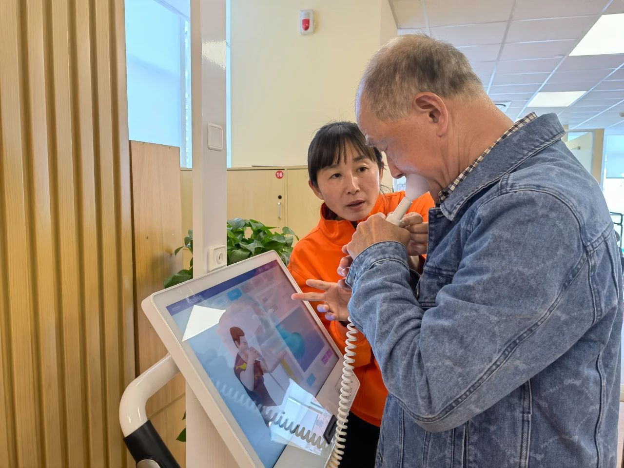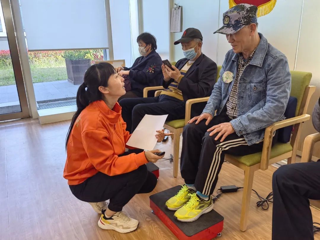 每一位来到长者运动健康之家锻炼的叔叔阿姨都会通过AI智能体测一体机获取体测报告,通过尚体乐活后台小程序生成“运动处方”,在运动健康师的指导下进行针对性锻炼。“叔叔阿姨每天来锻炼前,首先要‘打卡’,进行心率和血压监测,通过实时的血压和心率数据,确定今天的训练日程。”尚体乐活工作人员卢臣干介绍道,“有时候因为路上走得太急,叔叔阿姨测出来血压偏高,我们就会建议他(她)先喝点水、休息一下,或者从比较舒缓轻松的全身律动运动开始一天的锻炼。”