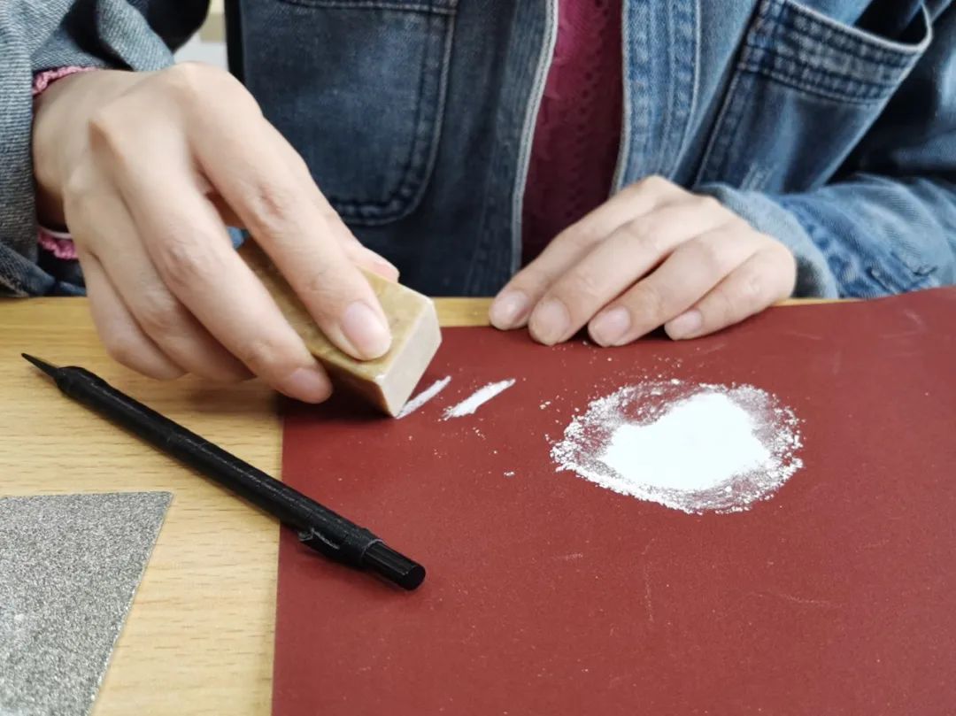 在磨印章环节,现场满是沙沙声,学员们积极地与老师互动。小邱向记者介绍,自己拥有一定的绘画基础,对艺术创作很感兴趣,这是第一次系统性地学习非遗石雕,老师由简入繁的课程教学方法浅显易懂。