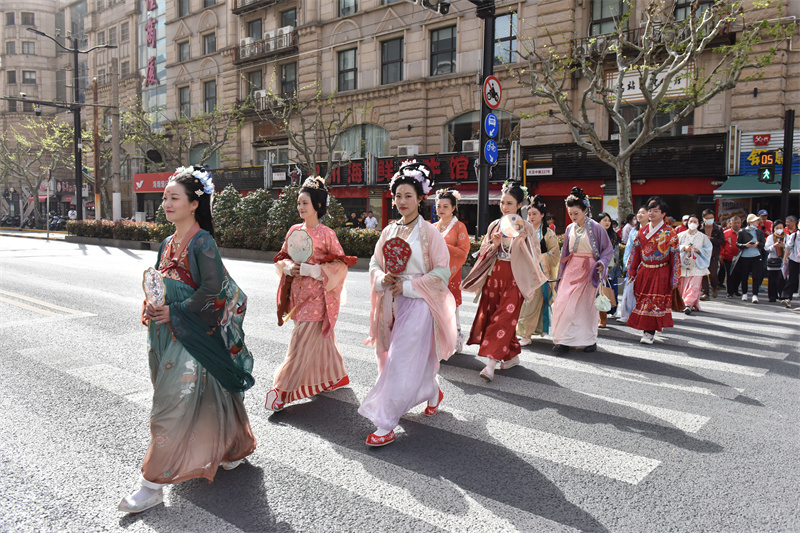 4月12日下午,一群身穿汉服的俊男少女,从北站街道社区文化活动中心出发,穿行于苏河沿岸一栋栋历史建筑之间,吸引了路人的目光。