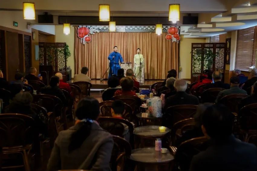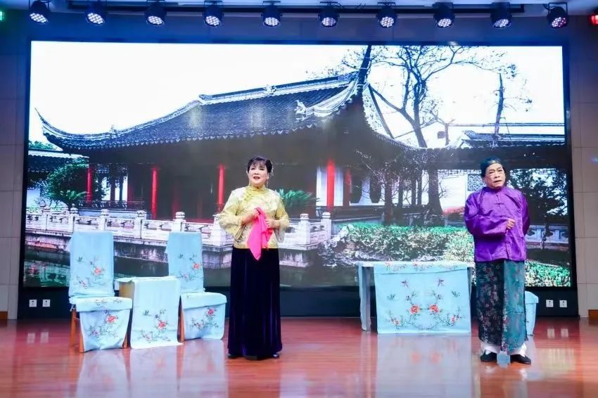 在三楼书场,“意蕴真如”—真如镇街道“城市美育日”评弹专场如期上演。演员周彬和胡文瑾为居民朋友们带来了评弹名作《大红袍》。在古色古香的书场内,居民朋友体验到了评弹的魅力。