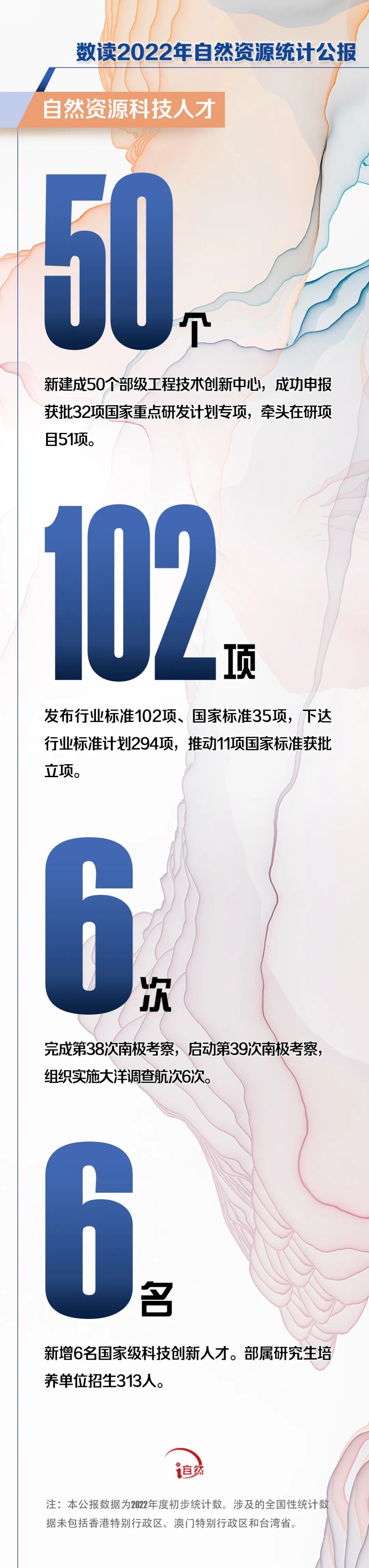 《公报》显示,在自然资源科技人才方面,2022年,新建成50个部级工程技术创新中心,成功申报获批32项国家重点研发计划等项目,牵头在研项目51项。