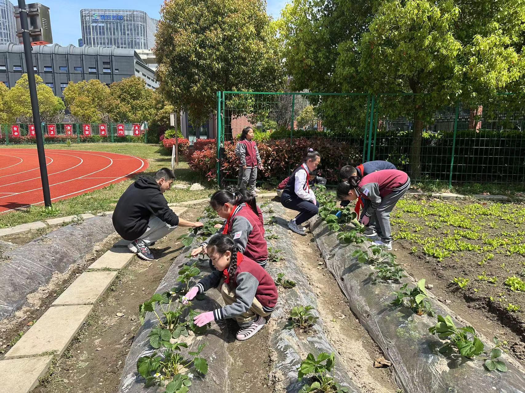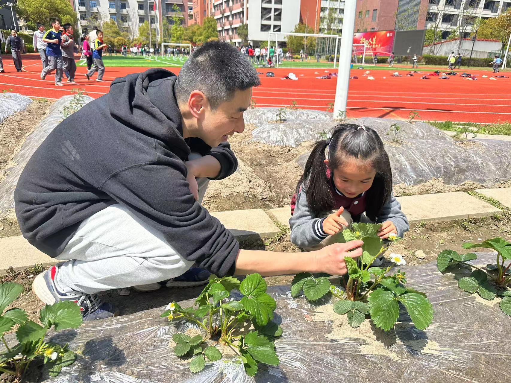 “快看我手上的这只毛毛虫,要把它清理掉,不然这个害虫会吃菜叶。”一个阳光灿烂的午后,黄浦区教育学院附属中山学校一年级学生朱箐杨和几个同学又一次来到学校的“娃娃农场”查看蔬菜长势,为草莓苗疏花疏果。从以前没下过菜地,到现在敢直接徒手捉虫,虽然下地干活只有半年多,但同学们的变化和收获都特别大。