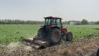 行走乡间,拖拉机穿梭于田间地头,不仅提高了春耕的效率,也大大节省了人力。这次的耕地完成后过一个月左右将会进行第二次耕地,在这中间则是不停地灌溉农田,等第二次耕地完成,土地会变成肥沃平整,届时农户种植起来也会更加方便。拖拉机开过,土地变得平整,同时农田里长势喜人的蚕豆也被推倒,翻滚进泥土里,这些蚕豆虽然不能作为食物,却也有着大用途。“这个呢,不是经济作物,主要是为了用来改善土壤,团粒结构。”钱林章介绍,地里的蚕豆是为了增加肥料,成为有机肥,“这样种出来的水稻质量更高,肥料也用得少。”