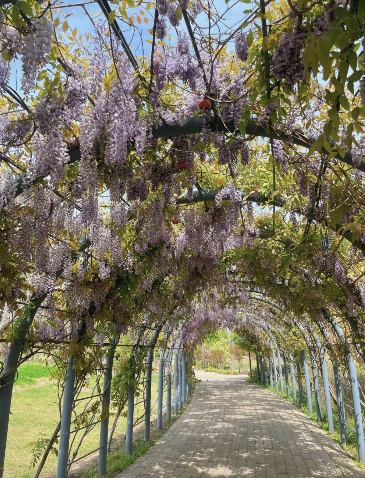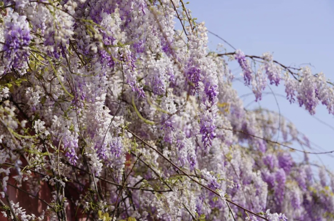 近日,不少市民喜爱的“紫色瀑布”如约而至。而本周,紫藤花也进入了盛花期,趁着这几日晴好天气,不要错过了与四月春日的浪漫之约吧!在奉贤区泡泡公园内,一条浪漫的紫藤廊道吸引了众多游客前来打卡赏花。