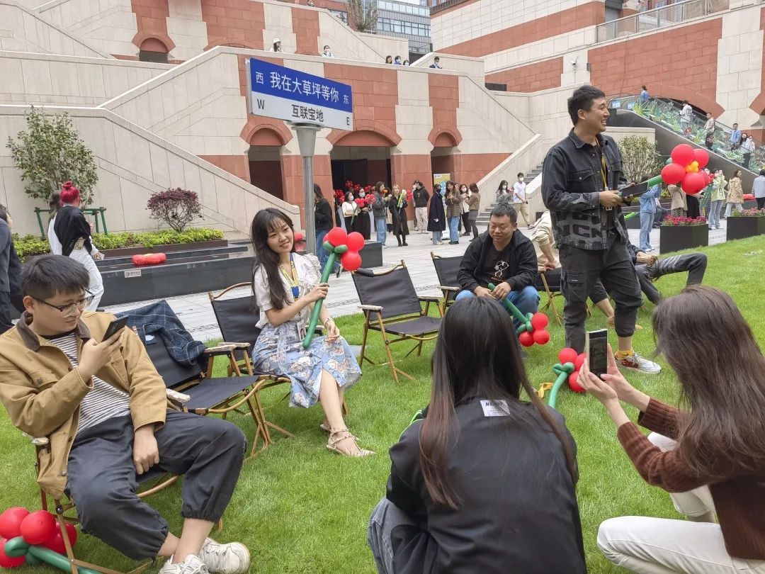 互联宝地同时也是一个可以拍照打卡的“神仙园区”。除了大草坪露营地,园区内还有麦当劳斑马线、潮酷涂鸦墙、工业风装置、欧式建筑风、成片的樱花树及公共绿地……分分钟出“大片”。