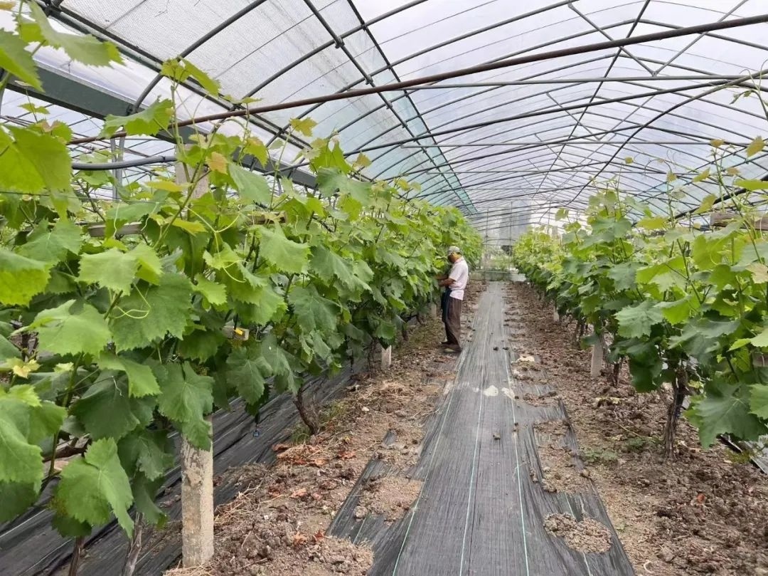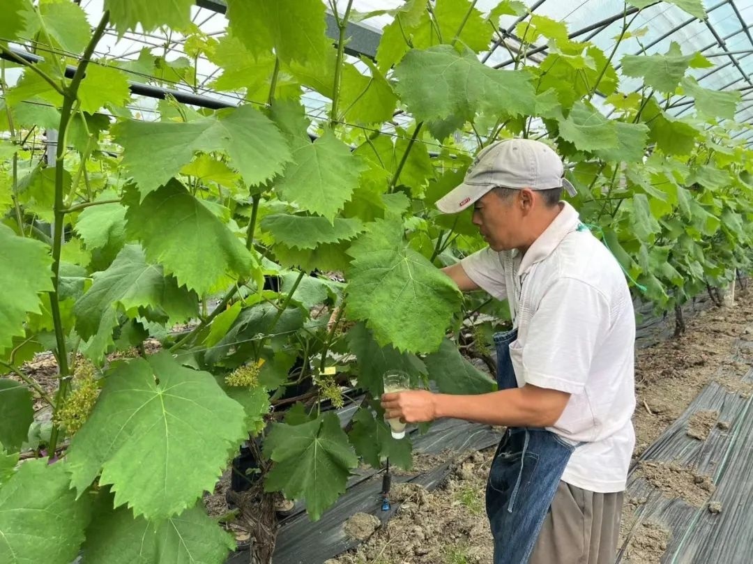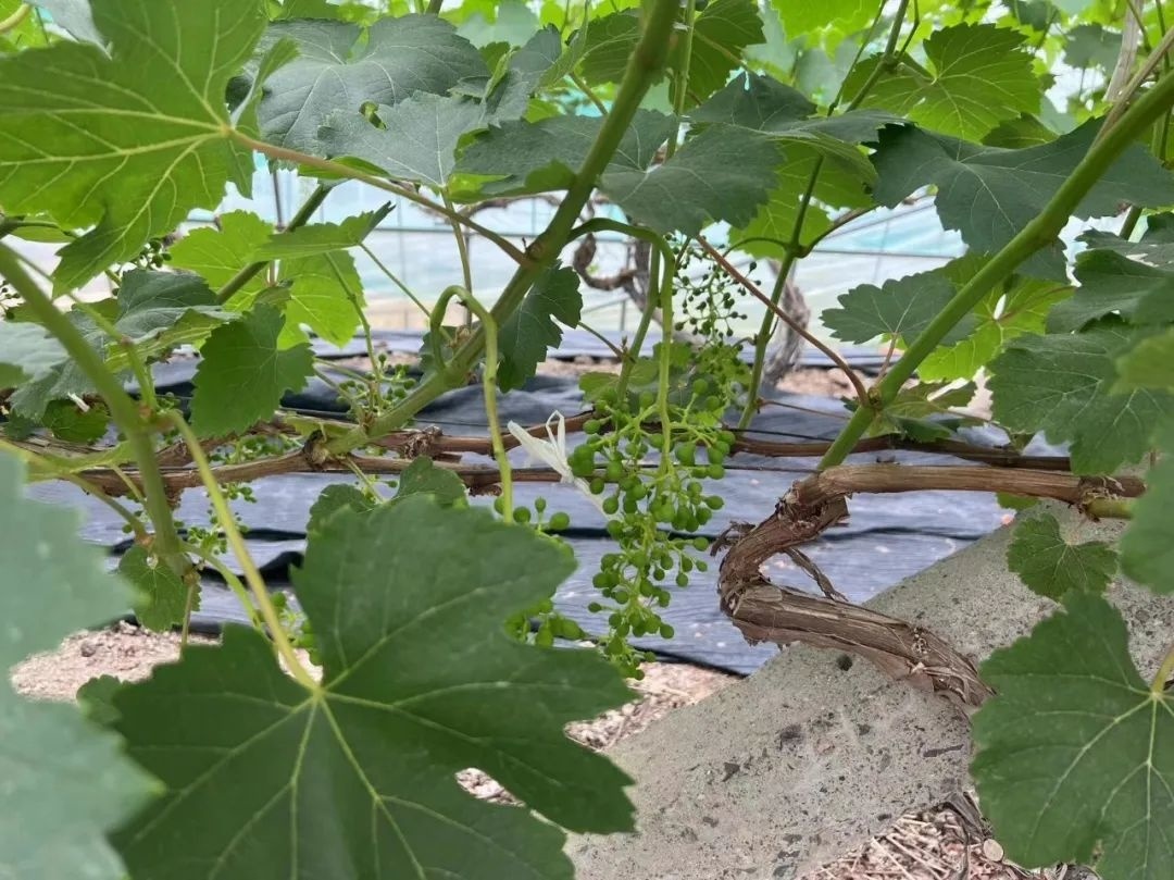 在施泉葡萄园内,葡萄藤已经爬满架子,黄豆大小的果实挂在绿叶中。合作社负责人卢玉金正忙碌地穿梭在藤架间,“如果不对葡萄进行疏花疏果工作,就会导致养分消耗、果粒大小不一、穗形不整齐、品质下降等问题。进行疏花疏果后,葡萄的果形会更美观,品质也会有所提升。”卢玉金说道。