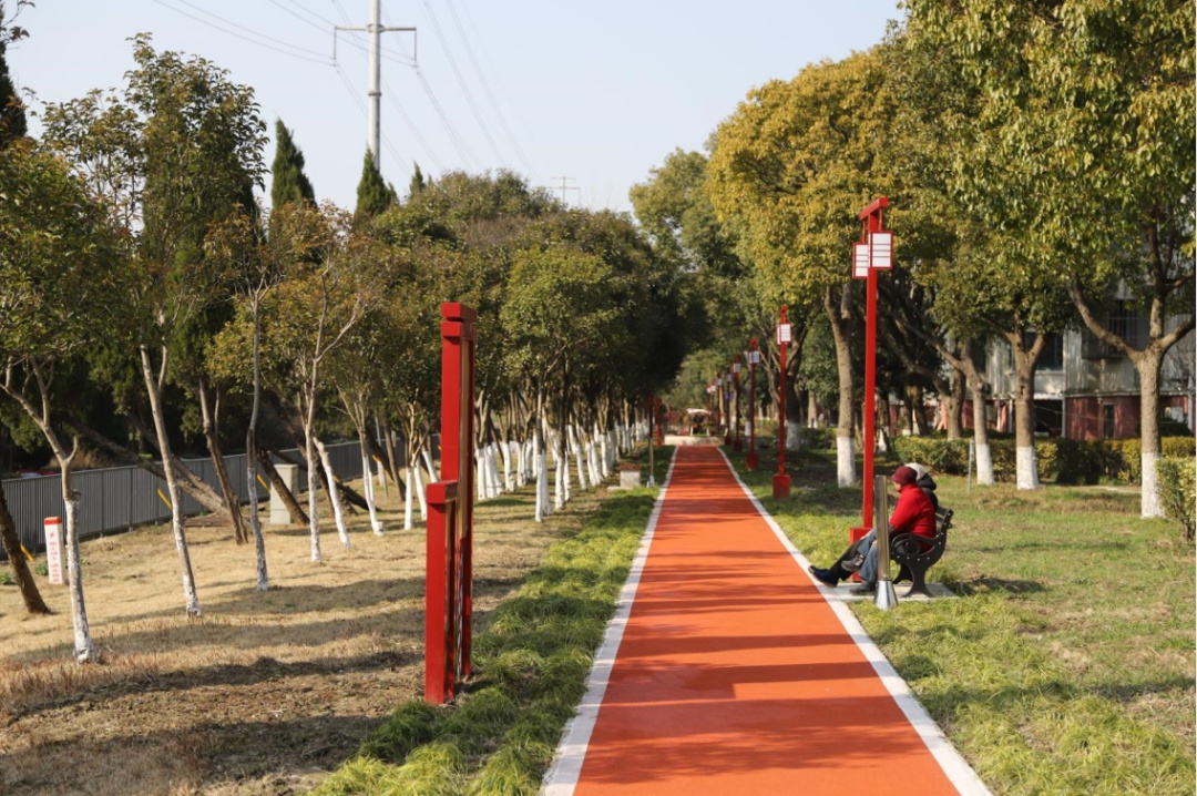 目华居委主要为满足社区居民体育健身,健身步道于2022年在小区内部建设完成,闹中取静,原为小区绿化用地,杂草丛生无人管理,后成立“护绿自治队”为步道旁边的垃圾进行清扫,现前来健步行走锻炼的市民络绎不绝。步道周边设有休闲椅,方便居民休息。