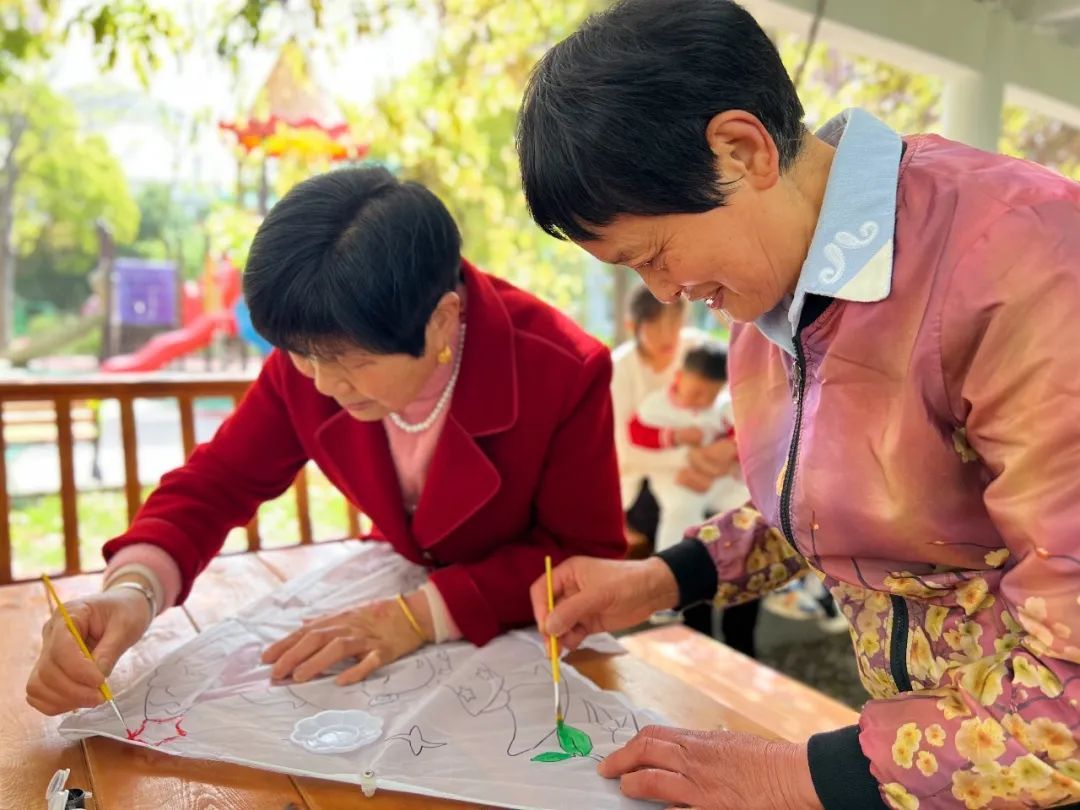 另一侧,阿姨们也共同制作着儿时的风筝,闲聊着家中趣事。