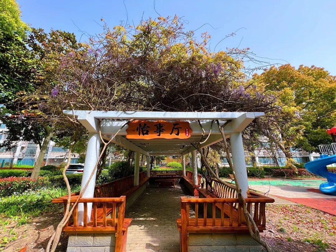 改造后的凉亭成了乐怡苑小区居民们的“心头宝”,他们集思广益,赋予凉亭新的名字“怡事亭”,并将DIY的手工艺品紫藤花串联在亭子里的藤蔓中,妆点在凉亭的柱子上,添上一抹暖心的气息。