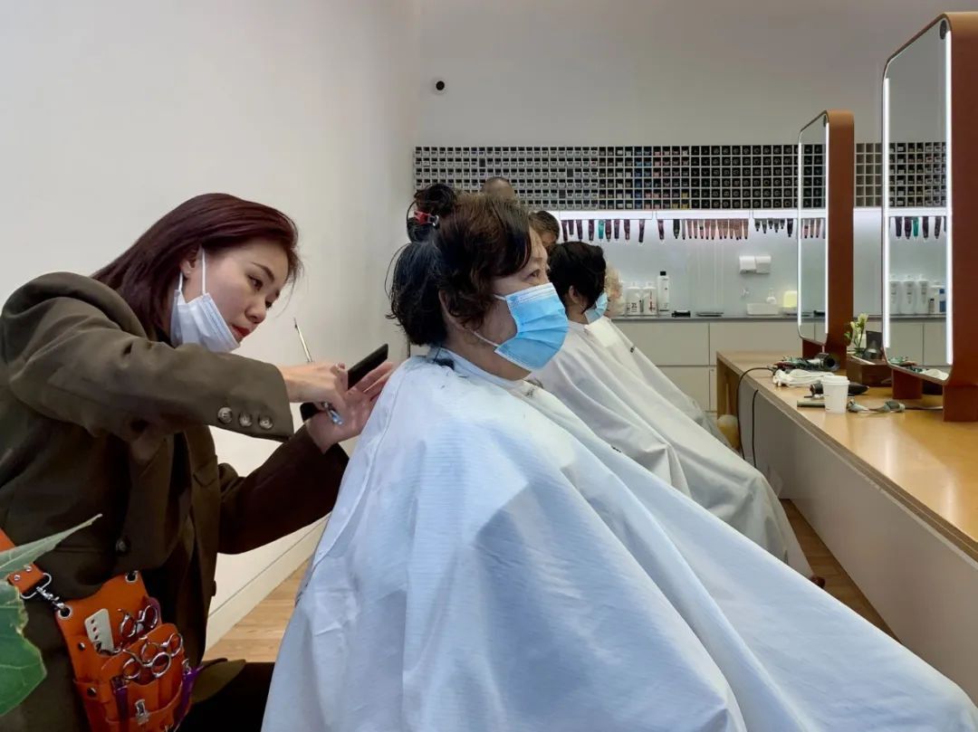 “阿姨,轮到您剪头发啦!”4月7日上午,松江印象城开门营业不久,三楼的“维沙AMANI”理发店里便迎来了第一拨“银发客人”。老人们无需付款,只要报序号就可以理发。原来,当天是该理发店的公益剪发日,年满65岁的老人,只需提前在理发店的微信群内接龙登记,即可免费理发。