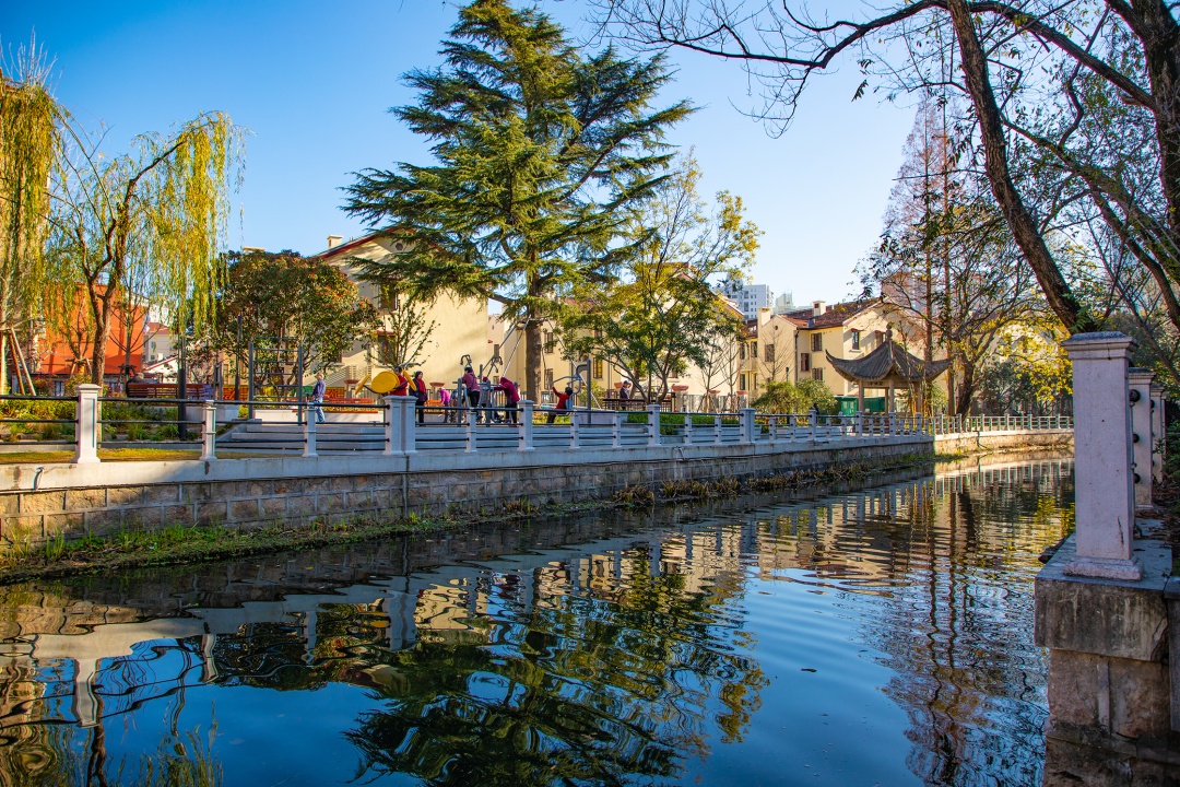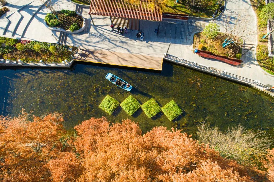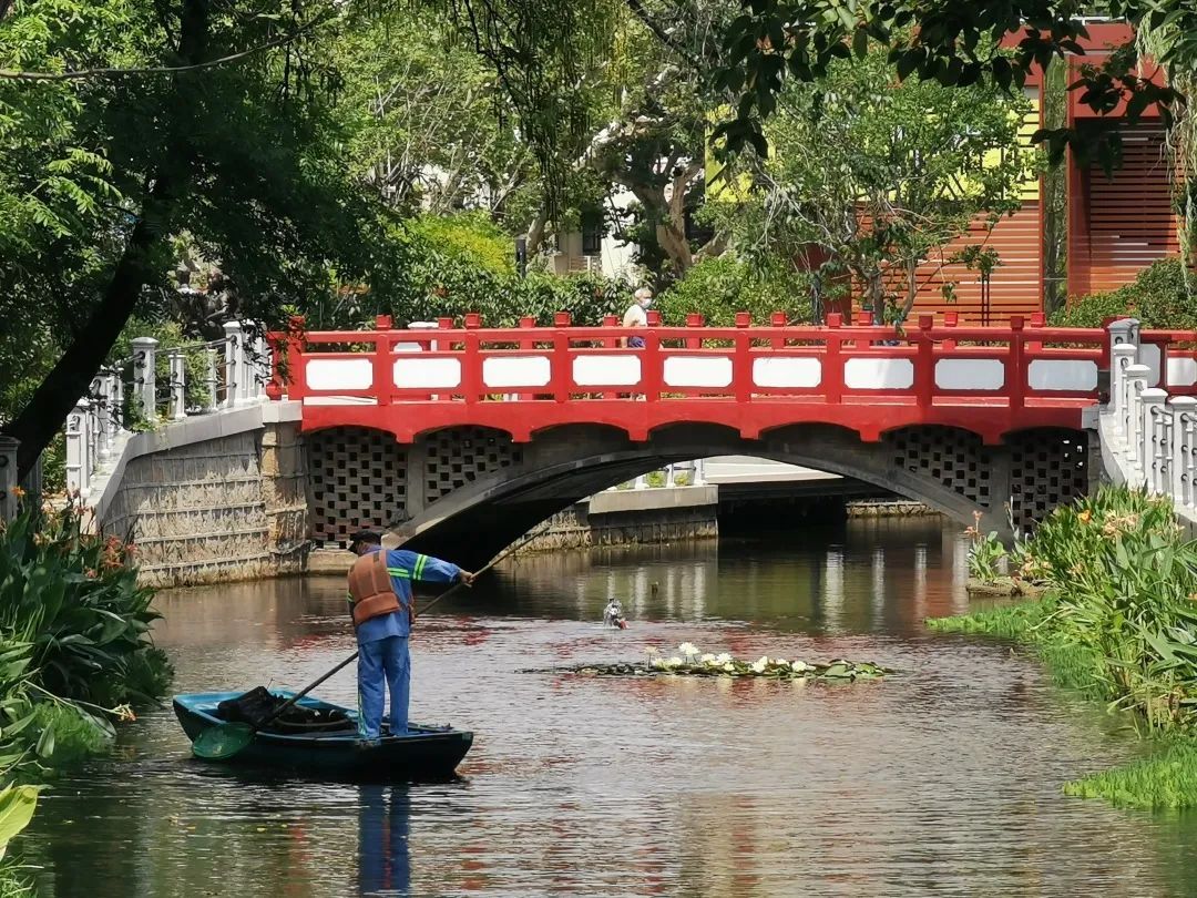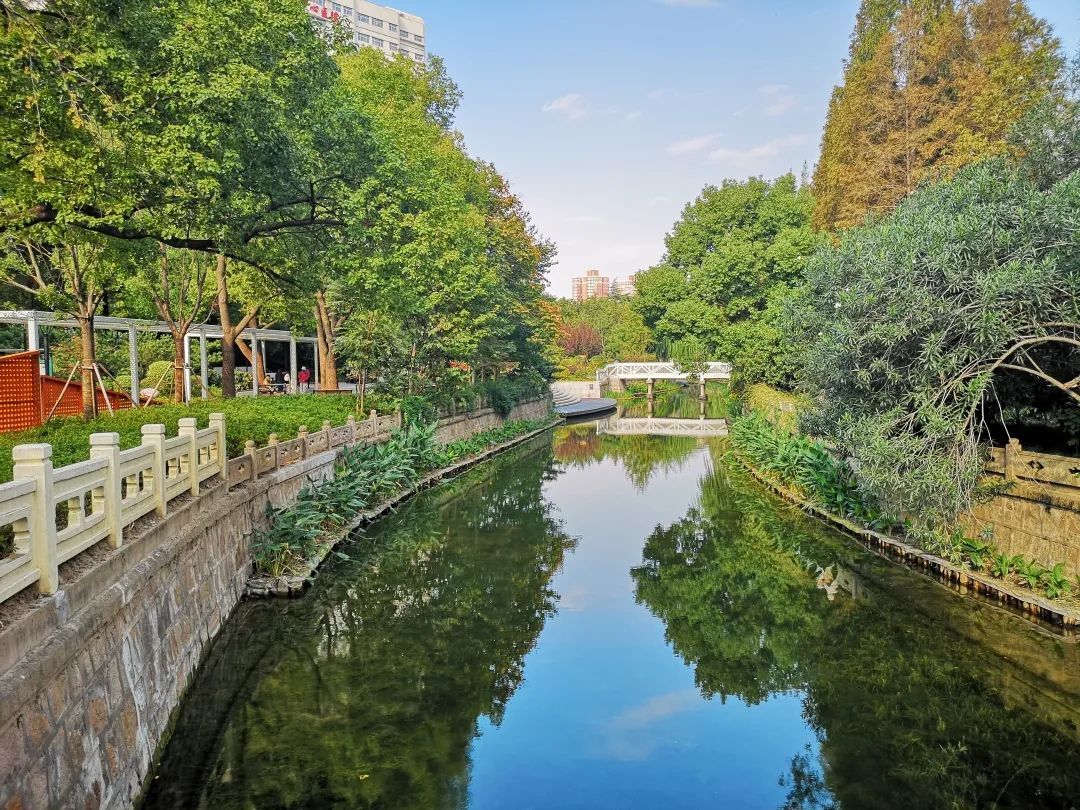 曹杨环浜沿岸有八景:山水小筑、兰溪涌瀑、花溪休闲、红桥垂钓、曹杨健身、兰园登舟、桂巷雕塑、拱桥香飘。
