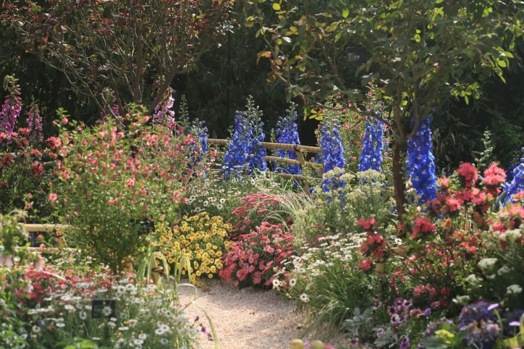 随后步入一段幽长小径,花带蜿蜒如河流,此景名为“撷梦环游”,小径两侧各有一株木绣球,白色的花球压满枝头、如玉似雪,分外引人注目。
