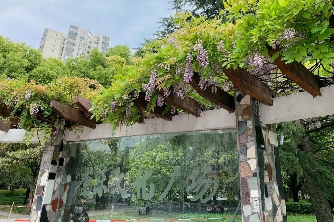 位于江安路的康乐文化广场,紫藤枝条沿着藤架,尽情攀爬着,恣意生长着,一串串紫藤花在春意盎然中绽放着。伴随着声声鸟语,仿佛在和人们打着招呼,诉说着新时代的美好。