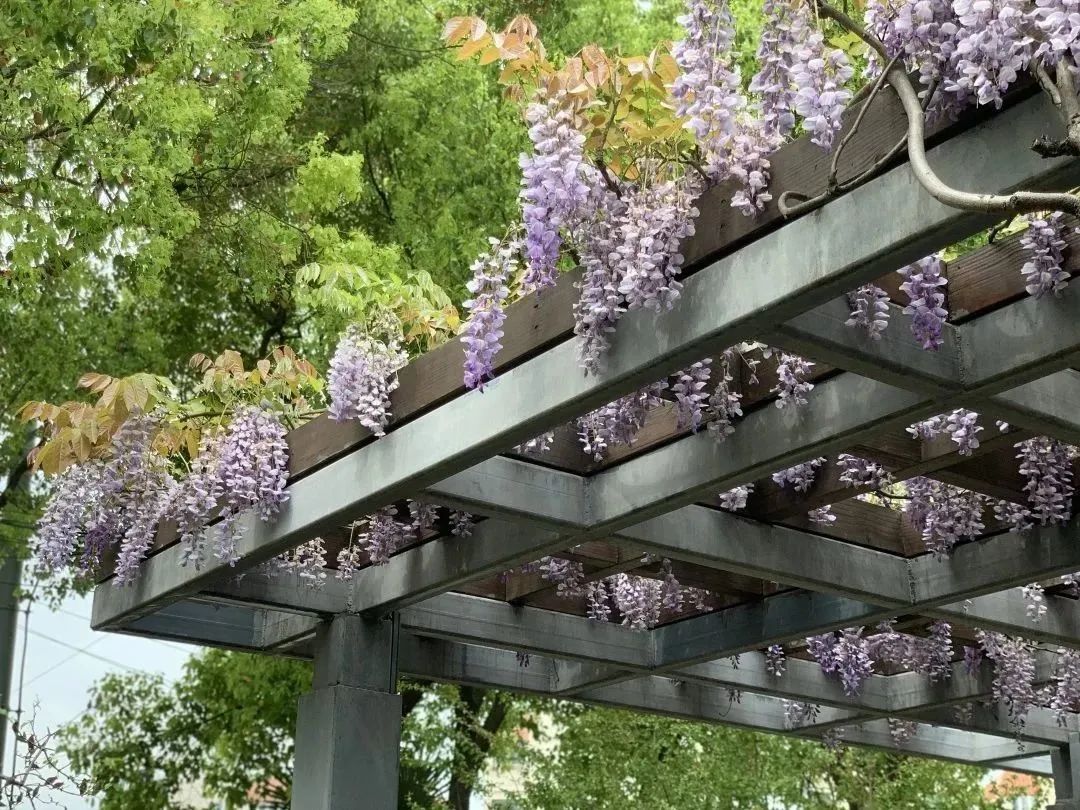 “藤花无次第,万朵一时开。”中环绿廊的紫藤早已花叶茂盛,灿若云霞,犹如一只只紫色蝴蝶翩然而至,舞动在长廊下,点亮了这个姹紫嫣红的春天。