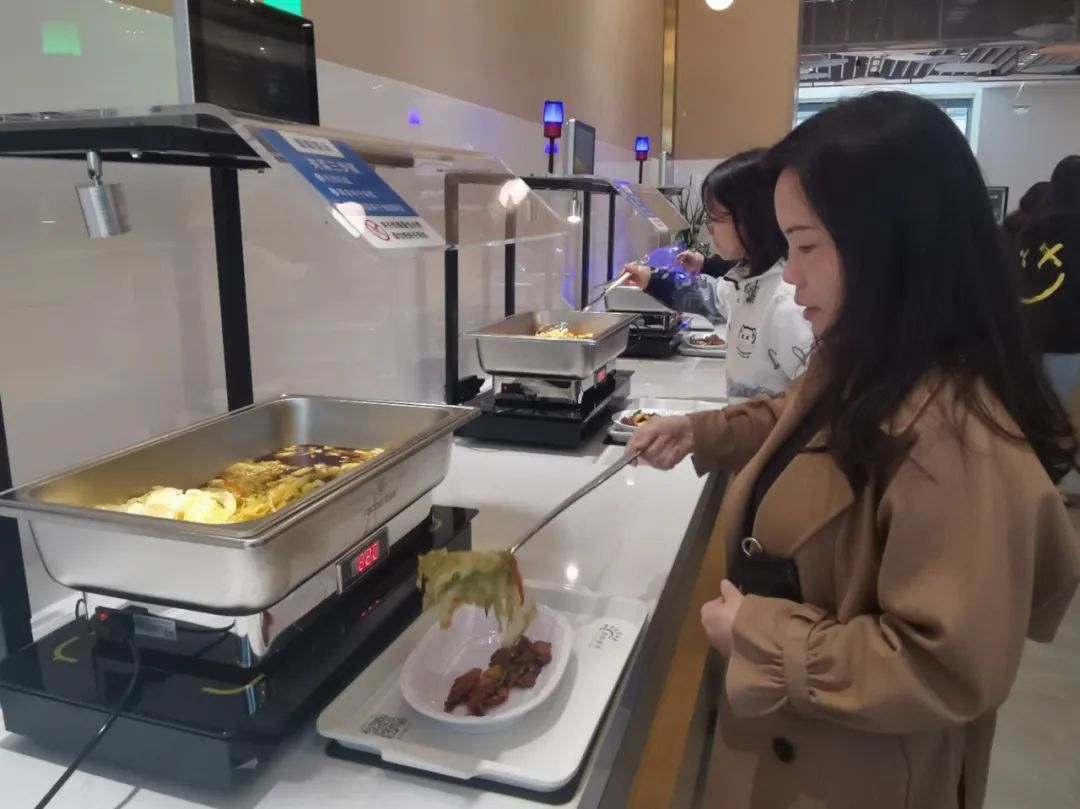 “智慧餐厅之所以被称为‘智慧’,是因为餐厅采用智能结算系统。”楚阳智慧餐厅相关工作人员介绍。用餐人员完成简单的账户注册流程后,只需通过人脸识别绑定账户或扫描餐盘上的二维码,即可进入餐厅自助取餐。在取餐区域,用餐人员将餐盘放在感应区上,取菜后,显示屏就会显示对应的菜名、重量、价格等相关信息。每移动一次餐盘,系统就会自动完成结算。