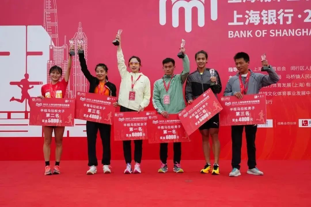 本次马桥半马赛道设施配套完善,创意拍照、奖牌刻字等优质的赛事服务同时为跑者提供了愉悦的奔跑体验。最终,李恩基以1小时10分25秒的成绩获得男子组冠军,潘红以1小时21分11秒的成绩摘得女子组桂冠。