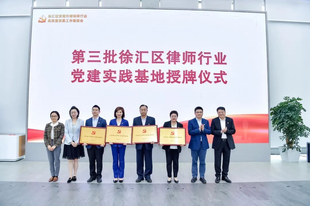 据悉,近年来,针对区域内律师行业快速发展、律所规模大小不一、办公地点分散、队伍流动性强等特点,徐汇区委组织部(区社会工作党委)、区司法局党委统筹加强新兴领域党建,指导区律师行业党委根据基层党支部特色,先后在8个律师事务所中组建“党建实践基地”。本次会议为新设的4个“党建实践基地”,举行了授牌仪式。