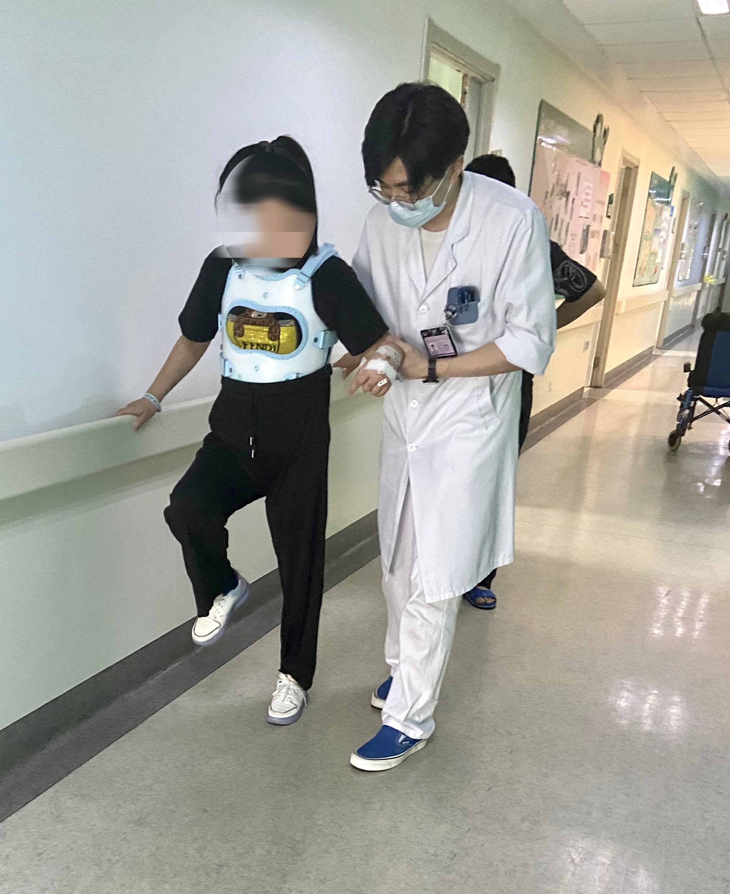 父母带清清前往当地医院进行诊疗,但未能有效控制症状,遂又辗转多家医院,但因病情复杂,均未达到理想的诊治结果。最终,其家人带清清来到上海市儿童医院神经外科,神经外科副主任医师詹琪佳接诊了清清及其家人,此时的清清只能依靠轮椅在爸爸的帮助下才能移动。