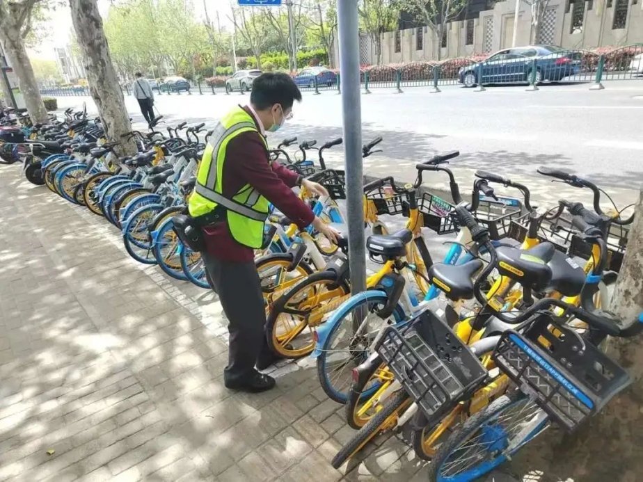 车站工作人员与执法中队巡视车站出入口,将违规停放的非机动车和共享单车摆入规定的区域内。与此同时,对出入口停留的可疑非机动车进行排查,取得了较好的整治效果。