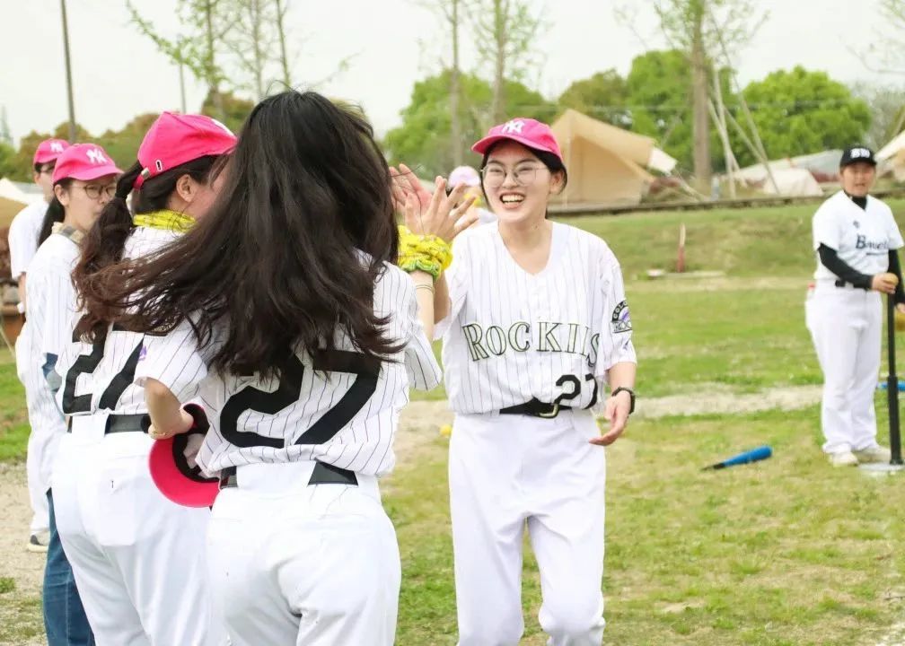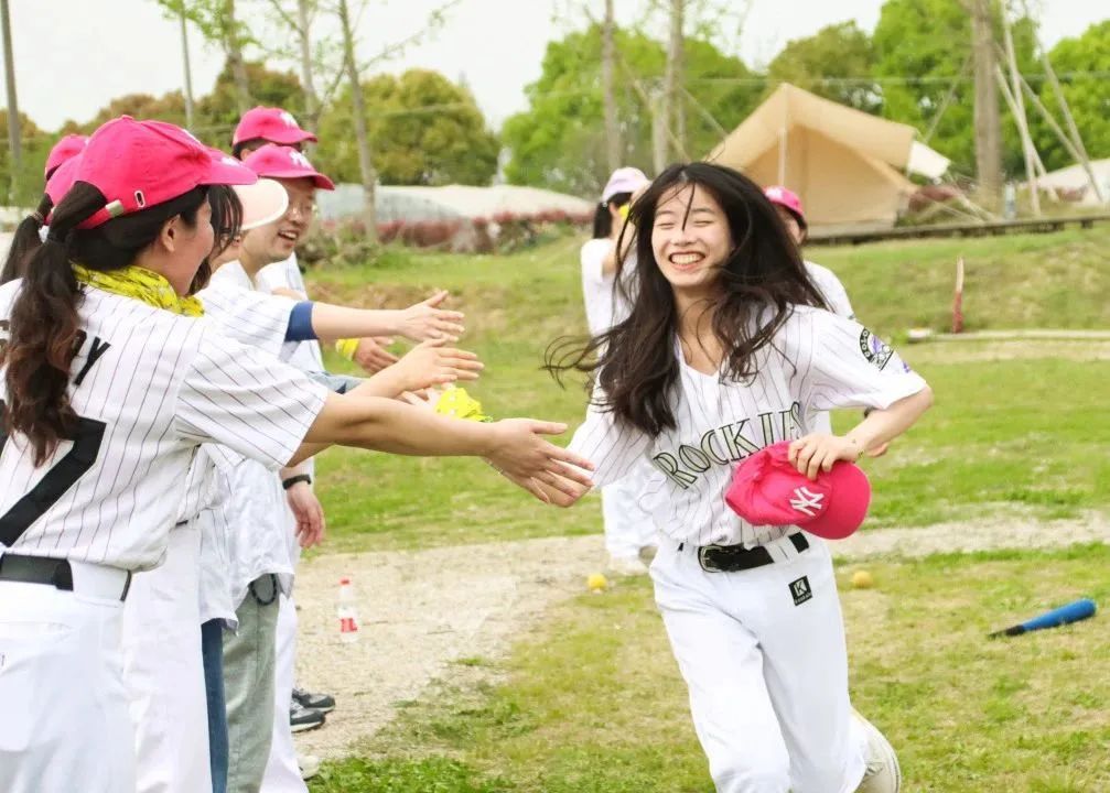 挥棒、奔跑、接球,大家在比赛中尽情感受棒球的魅力!得分的队员在归来时,一一与队员击掌庆祝,就算仅仅认识几个小时,大家的团队凝聚力也不容小觑,如同一支不可攻破的队伍。