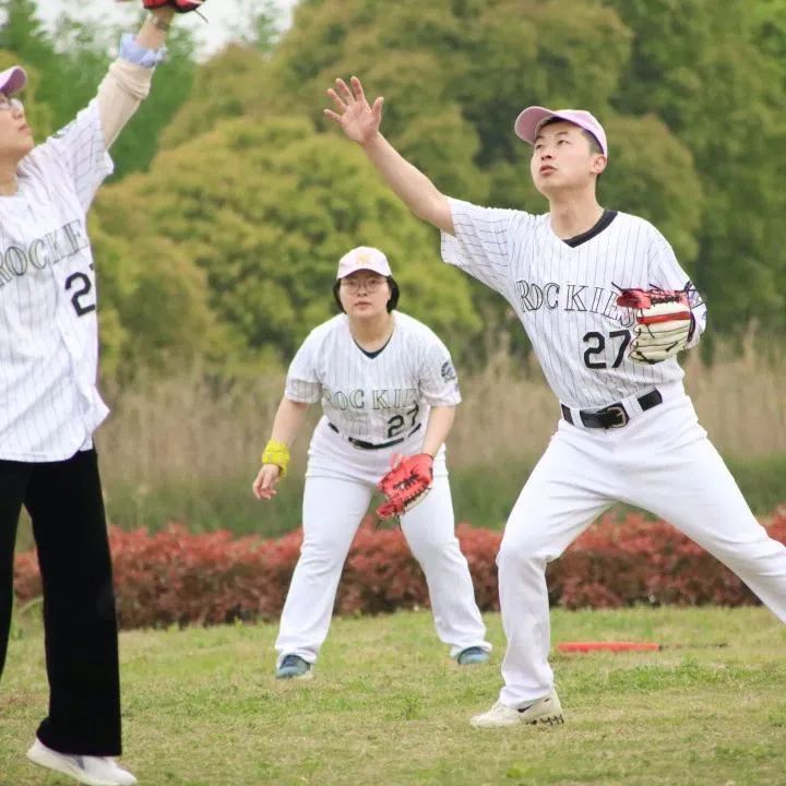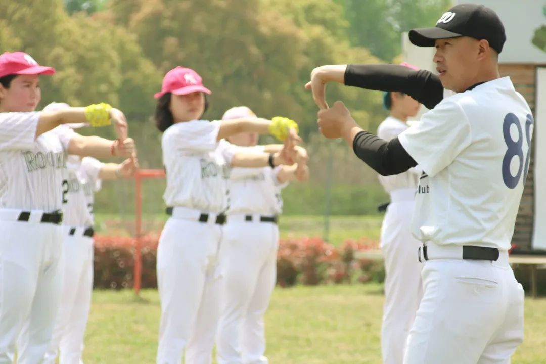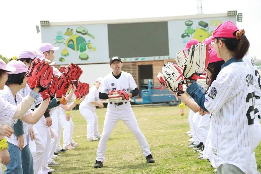 在正式开始运动之前,教练带领大家进行花式的热身训练,把身体充分打开,才不容易受伤哟!随后,教练进行基本的棒球动作讲解,抛球、接球、地滚球、高飞球,这些动作要领都在练习中渐渐掌握。