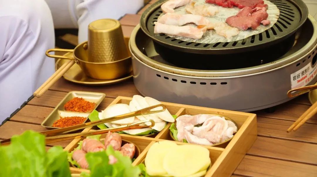 经过了早上的运动和训练,大家的肚子都咕咕叫啦~我们准备好了种类丰富的自助烤肉,不够的菜品全可以无限量添加!大家一起协助烤肉,玻璃房里满屋飘香,笑闹声也传遍了整个原野。