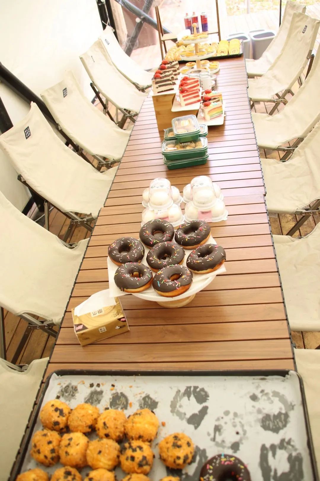 比赛结束后,我们还为大家准备好了丰富的下午茶和咖啡。瑞士卷、泡芙、蛋挞、甜甜圈等美食应有尽有。大家在屋里和河畔尽情享用美食,感受来之不易的悠闲时光。