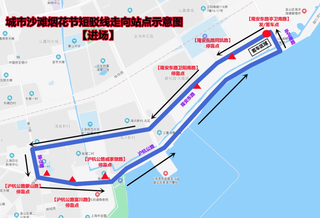 2023年4月29日、5月2日烟花秀活动期间,可乘坐短驳车前往活动现场: