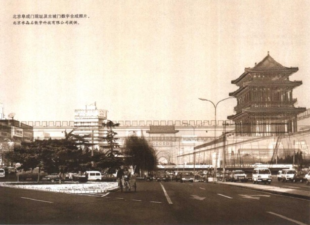 老城外,进城需求源源不断涌进老城。北京希望通过拓路,解老城拥挤之困。20世纪50年代起,北京实行道路“宽而稀”的双向交通模式,道路红线与其涉及的文物成了一对矛盾。1989年,北京著名元代道观一一东岳庙的山门,因被划在红线之内,在道路建设中被拆除;也是同样的原因,1998年,粤东新馆被拆除,但拥堵问题依旧。近年,北京一直在修复历史上走的弯路。