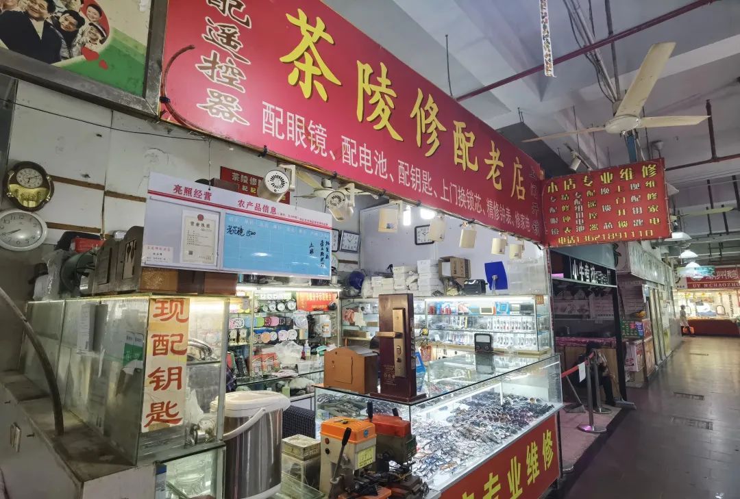 斜土街道茶陵菜场一楼就有这样一家店。修钟表、修家电、配钥匙、配眼镜、上门开锁、换锁芯……生活中大部分涉及的小物件修理都能在这里找到解决的办法。小小的一个铺位,满满当当地塞满了不同年代的生活日用杂物,宛如一间民间日常生活展览馆。