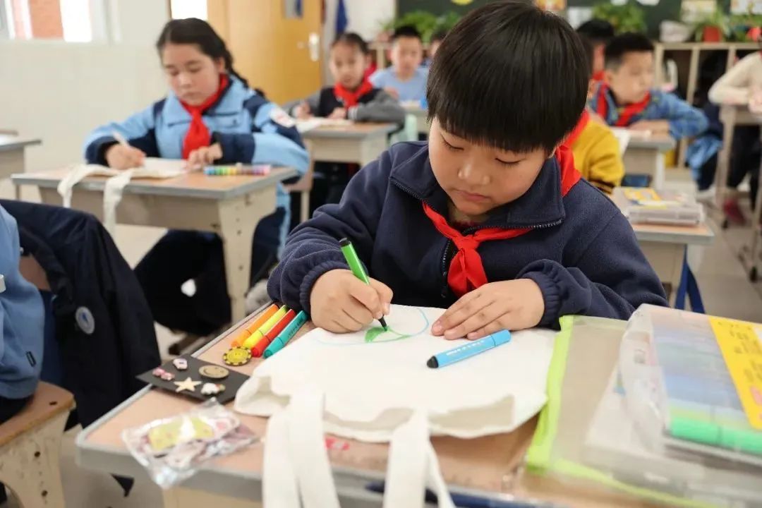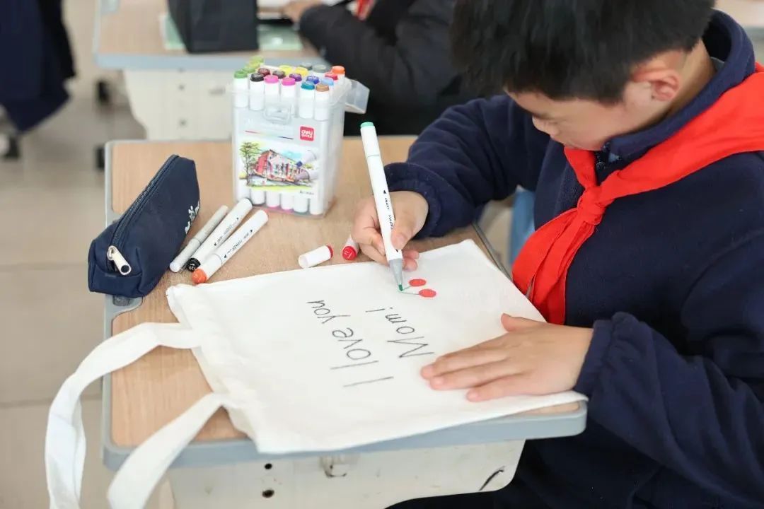 孩子们用拓印的方式,装点了帆布包,送给自己的妈妈或者身边的女性。