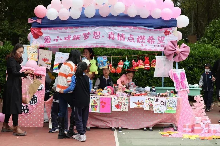 此处的义卖活动是曹行小学“校园四季成长系列活动”的一部分,学校将每年的3月定为“感恩月”,4月为“心理月”,而此次的义卖是“感恩月”和“心理月”的有机衔接。
