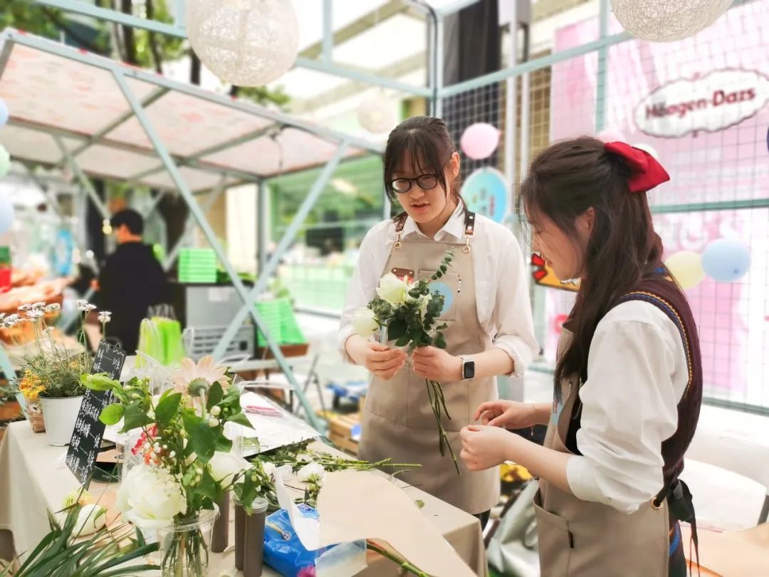 参与市集的张同学向记者介绍,这次同学们提前做足功课,大家都积极投身活动的各项环节,包括活动前到大型花市做市场调研,筛选市面上的流行花卉品种;摆摊前使用鲜花绿植,进行整体搭建和氛围营造;摆摊结束后复盘当天的售卖情况,提前考虑花卉品种的次日进货数量等。