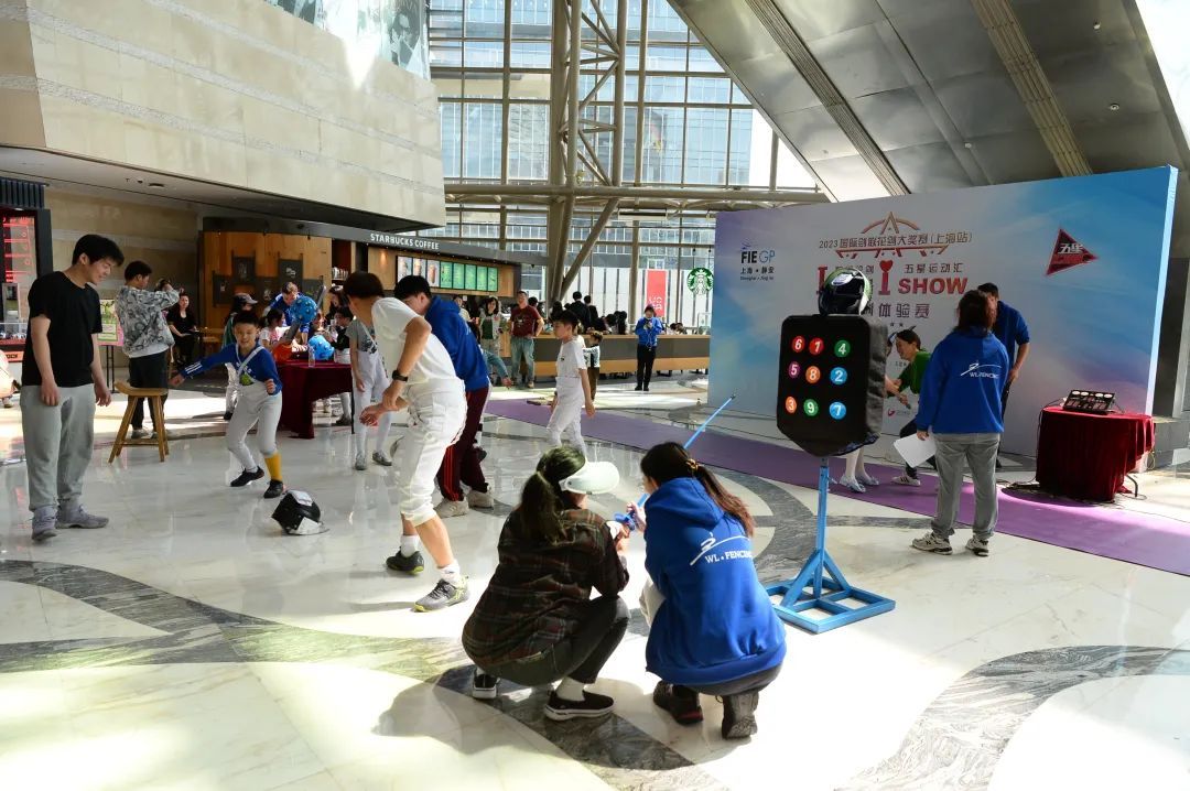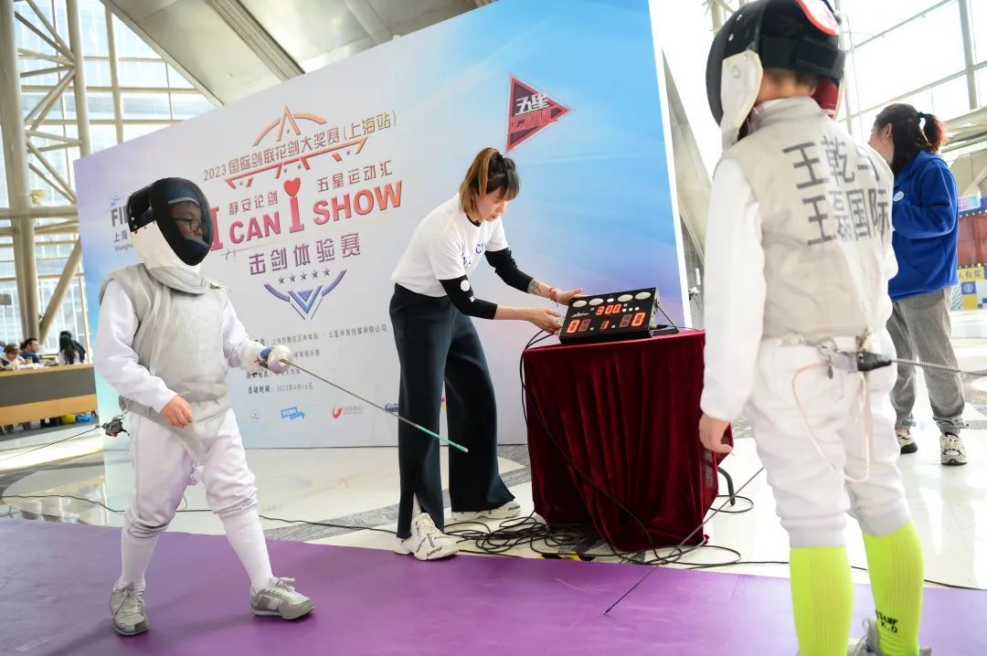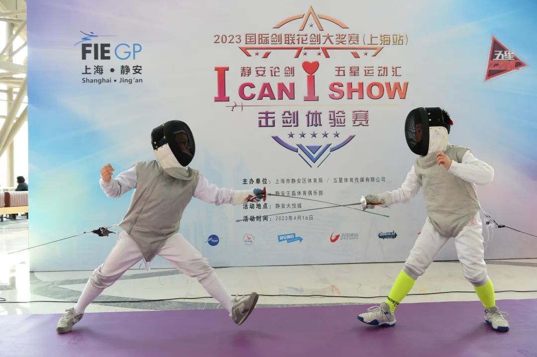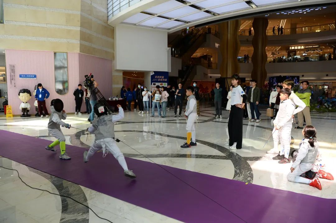 4月16日,2023国际剑联花剑大奖赛“五星运动汇·I CAN I SHOW”静安论剑系列活动击剑体验赛走进静安大悦城,这项活动也是为5月中旬揭幕的2023国际剑联花剑大奖赛上海静安站预热。