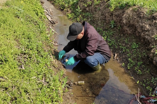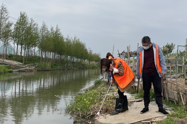 在查螺过程中,志愿者们按照事前安排,前往可能发现钉螺的水域,逐一实地进行仔细排查。同时严格按照疾控中心对血防工作的要求开展规范排查工作。只见志愿者们借用工具耐心细致地到河岸滩涂、草丛、公益林、沟渠等钉螺易隐藏地点查寻,不放过任何一处隐患。