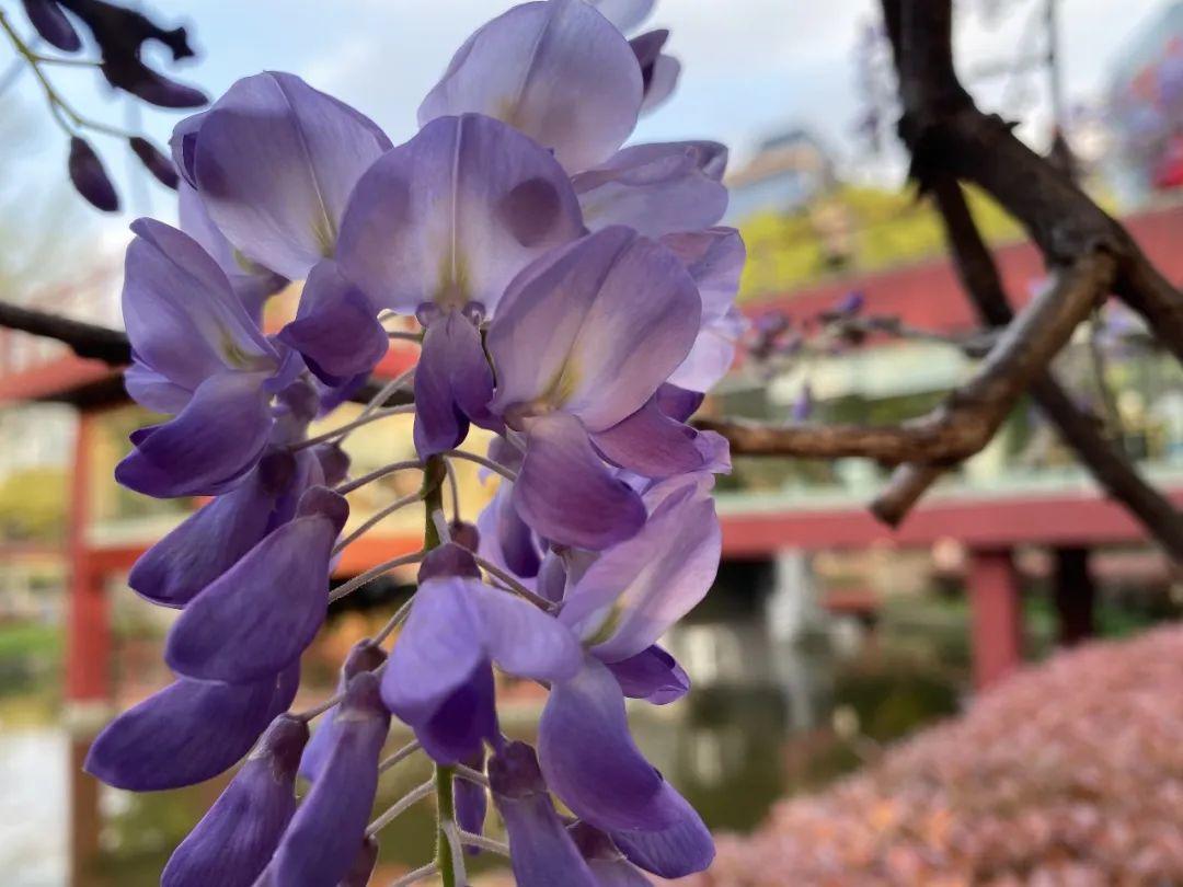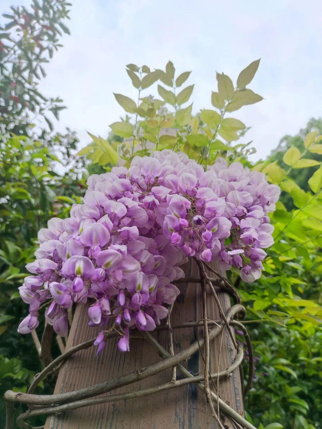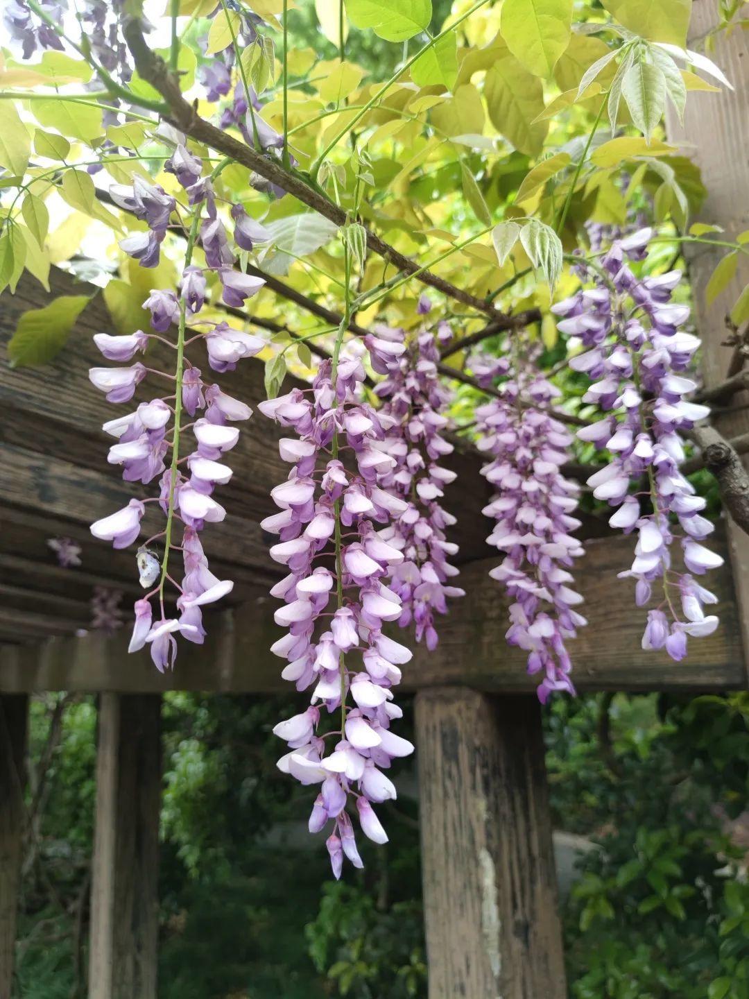 紫藤花有着团结互助的花语,藤蔓互相交错生长,如同一个大家庭般,所有人和睦相处,一起经历雨雪风霜,相互扶持。紫藤花花期虽短,但一身碧绿,满枝艳紫,保持自我,是众多人镜头下的最爱。春日阳光下,寻着紫藤花的足迹,去一览它的芳容吧。