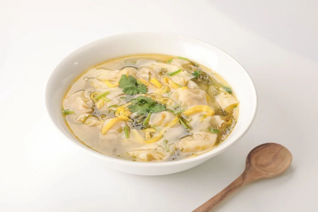 3.锅中加水烧开,放入包好的馄饨,沸腾后加入鲜鸡汁调味料8克、麻油3克。