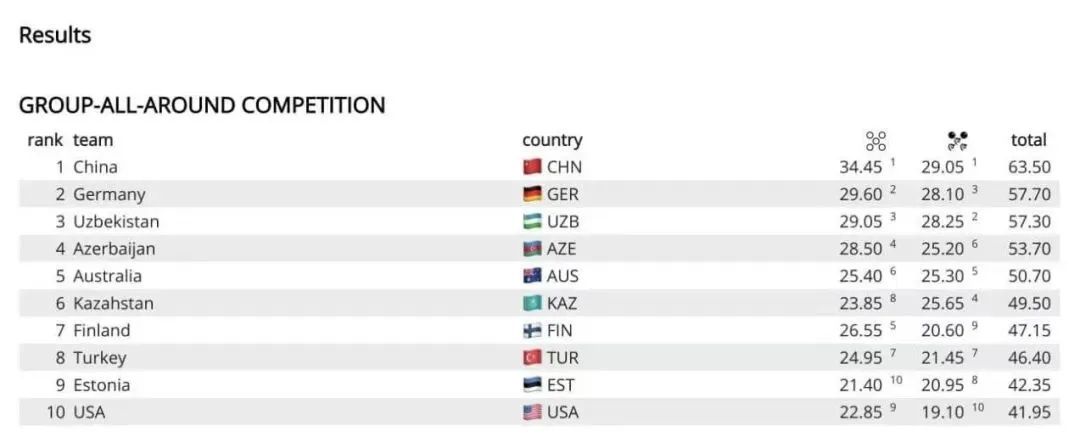 北京时间2023年4月14-16日,2023国际体联艺术体操世界杯塔什干站,在集体全能项目比赛中,上海运动员郭崎琪与队友们凭借出色的发挥,以63.50分的优异成绩为中国队夺得冠军。德国队以57.70、乌兹别克斯坦队以57.30分获二、三名。