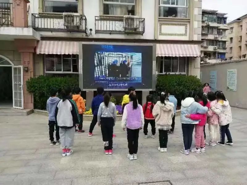 在辖区内中小学校,街道食安办利用各小学课间操时间,在操场大屏幕上播放《制止餐饮浪费,青年在行动》宣传片,学生以此为题材制作手抄报。