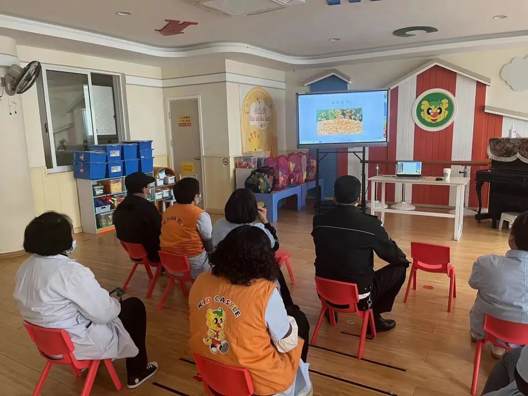 在辖区内托幼机构,街道食安办采用“老师学习—总结要点—转述学生”的方式,让幼儿教师先行观看相关宣传片,以讲故事、观看动画等幼儿容易接受的方式进行反食品浪费的宣传教育。