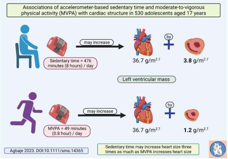 研究者认为,这项研究拓展了久坐对心脏不利的认识。在成年人中,心脏质量每增加5g/m2,心血管疾病和死亡的风险就会增加7%~20%。