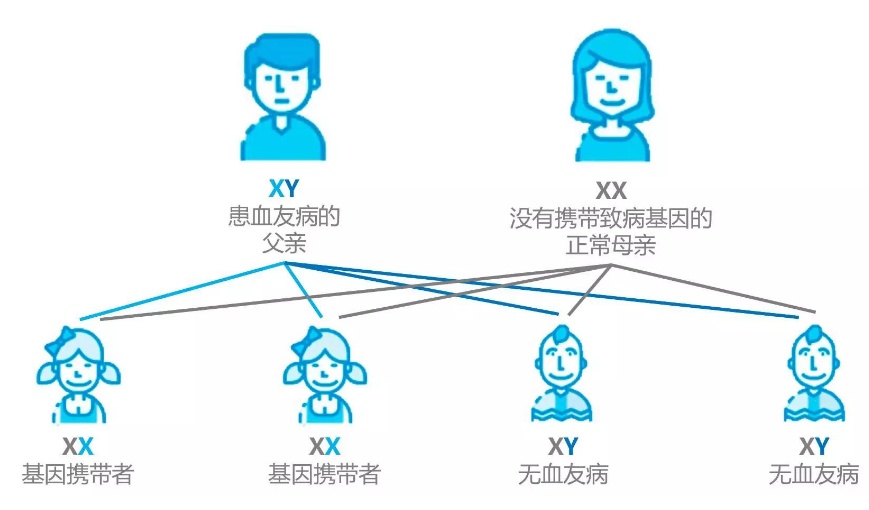 “血友病是一种X染色体连锁的隐性遗传性出血性疾病,包括血友病A和血友病B两种。”刘立根介绍,血友病A表现为凝血因子Ⅷ(FⅧ)缺乏,血友病B则表现为凝血因子Ⅸ(FⅨ)缺乏,两者都是由相应的凝血因子基因突变引起的。
