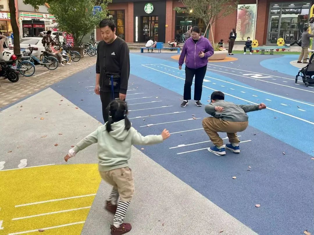 “特别是这个塑胶地面,印有立定跳远的刻度和两条跑道,还有跳房子的图案,让大人也找到了童年的美好回忆。”居民们纷纷对新建成的“口袋体育公园”赞不绝口。